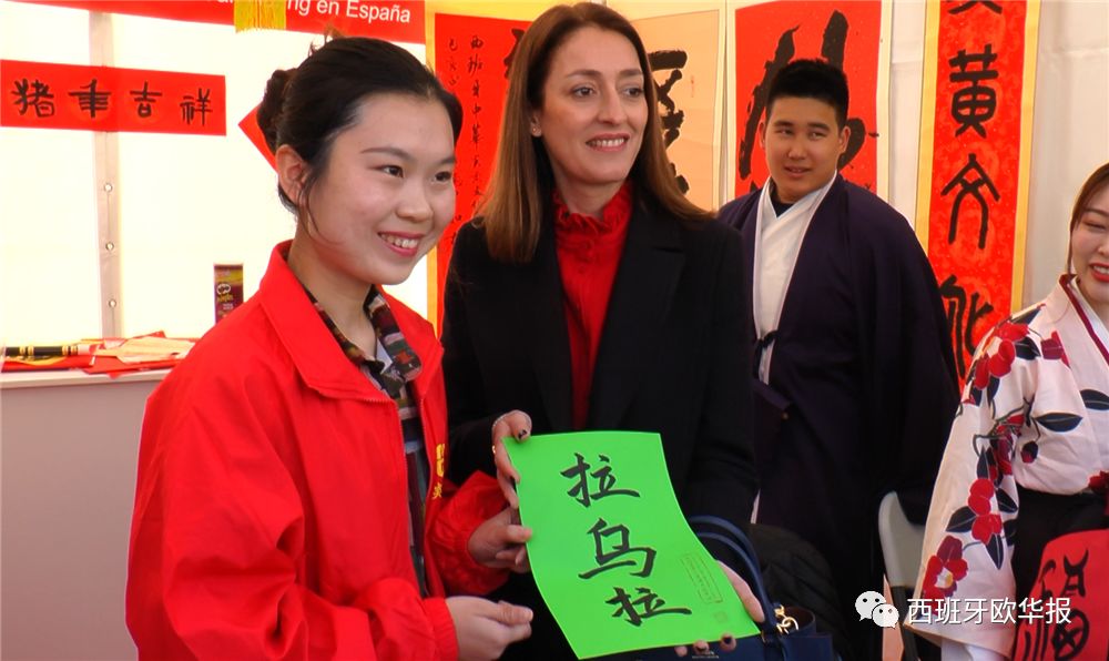 开幕式在现场观众此起彼伏的掌声中结束。随后,吕凡大使、刘雯秋参赞和朱健参赞等使馆官员与马德里大区旅游部主任Laura Blanco Pilar女士在侨领代表的陪同下,参观了庙会现场的各个展位,包括中国传统服饰、中国书法、手工制作、中国特色小吃等。